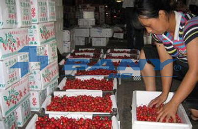 (三)貯藏方法1 .冷藏 櫻桃冷藏的適宜溫度為—1~l℃ ,相對濕度為 90 %~95 % ,在此條件,貯藏期可達(dá) 20~30 天。櫻桃在入貯前先預(yù)冷并進(jìn)行采后處理和包裝后入庫貯藏。人庫后使果溫迅速降至2℃ 以下,要保證恒定低溫高濕條件。